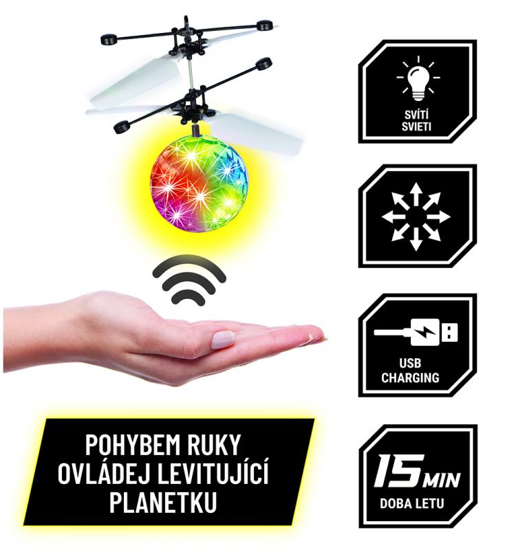 Levitující planetka na dálkové ovládání se světelnými efekty.