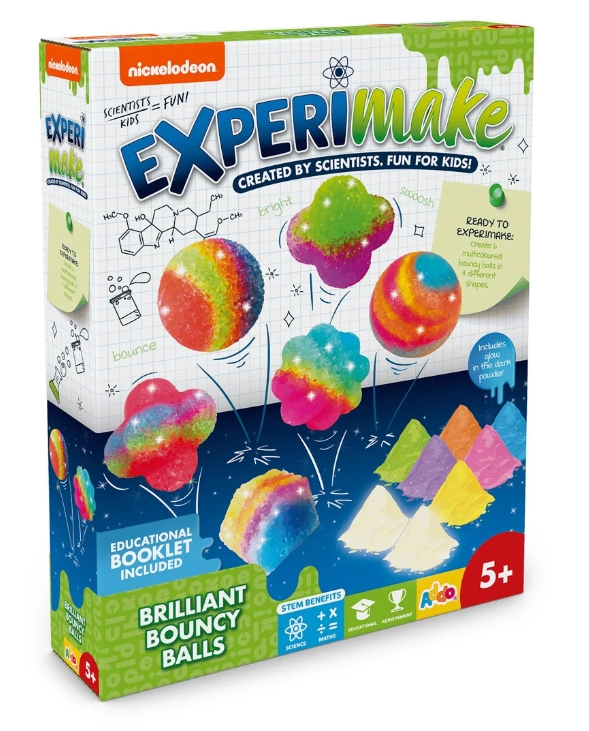 Voláme všechny vědce! Sada Experimake jsou tu proto, aby bylo hraní ještě zábavnější. Použijte přiložené ingredience, aby tyto skákací koule ožily! Naplňte formičky barevnými granulemi a ponořte je do vody, abyste vytvořili barevné skákací koule. Který tvar se odrazí nejvíce? Se vším, co potřebujete v této skvělé sadě STEM, vám sada umožní objevovat vědu jednoduchým způsobem. Nezapomeňte sbírat zbytek řady Experimake pro ještě více zábavy. Rozměry: 20x25x5cm. Věk: 5+