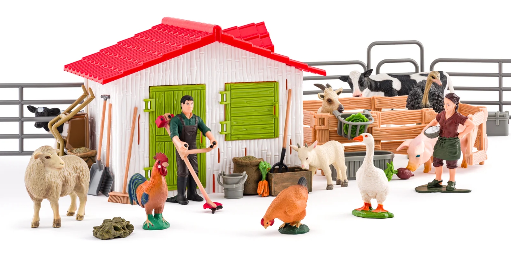 Tato bohatá sada je opravdu plná zvířátek a příslušenství. Obsahuje ta nejznámější zvířata i s mláďaty, farmáře s farmářkou, hospodářskou budovu s ohradami a spoustu dalšího příslušenství. Věk: 3+