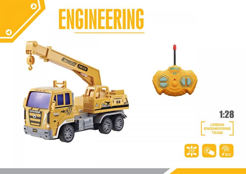 Jeřáb na dálkové ovádání. Pohybuje se dopředu, dozadu a dostran. Velikost 1:28. Nabíjení na USB.