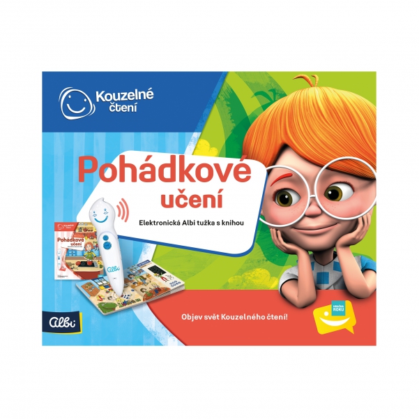 Interaktivní mluvící kniha Pohádkové učení s Elektronickou Albi tužkou z edice Kouzelné čtení seznámí děti předškolního věku s barvami, tvary, části těla, čísly nebo třeba protiklady. Celou knihou je doprovodí skřítek Zvídálek. Veselého skřítka zajímá úplně všechno a nebojí se zapojit ani do práce na zahrádce. Zavede děti i do divadla nebo na nákup, navštíví s nimi pana doktora i mateřskou školku.