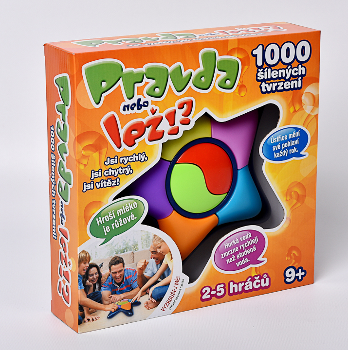 Elektronická společenská hry pro 2 - 5 hráčů. Urči si barvu, pod kterou budeš hrát, odpověz na tvrzení (1000 nahraných tvrzeních), které ti rozhodčí řekne a získáš body. Pokud odpovíš špatně, tak body ztrácíš. Rychlá, zábavná a svižná hra pro celou rodinu. Vhodné pro děti od 9 let