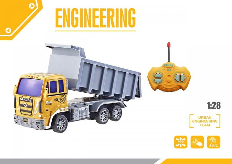Sklápěčka na dálkové ovládání. Pohybuje se dopředu, dozadu a dostran. Velikost 1:28. Nabíjení na USB.
